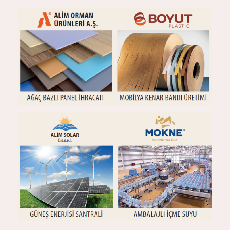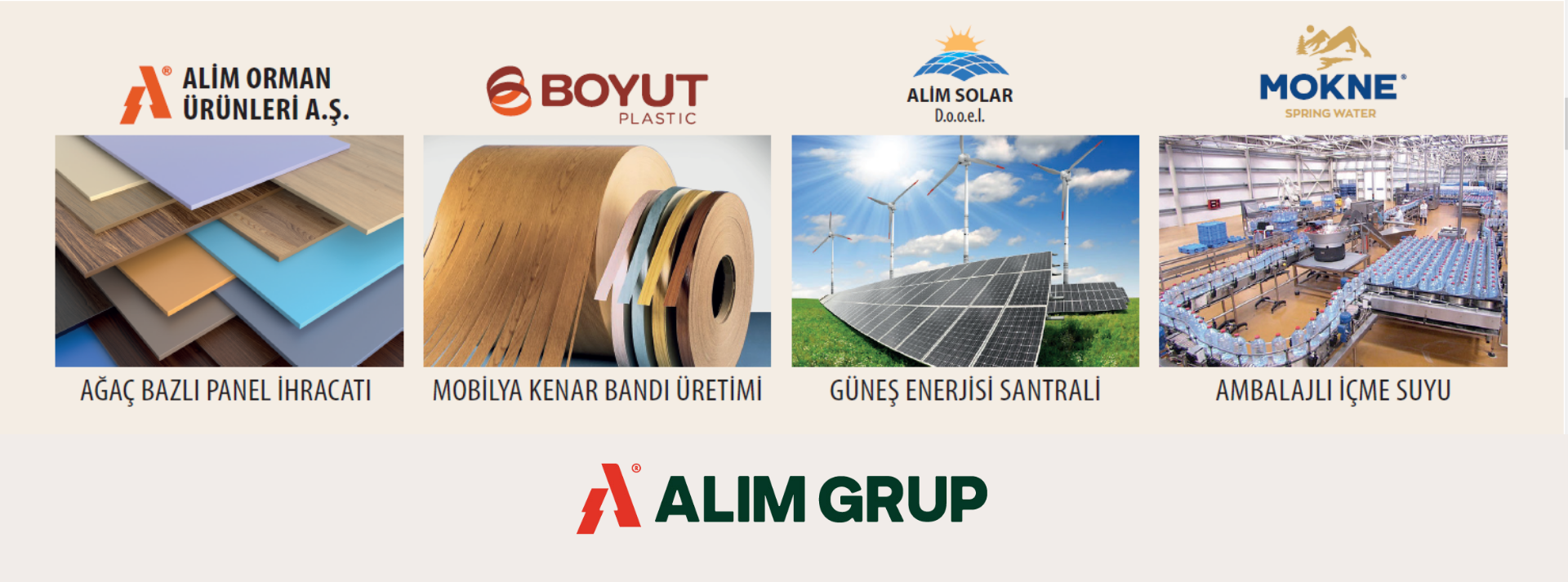 Alim Orman Ürünleri Sanayi ve Ticaret A.Ş. olarak yıllık 250 bin m3 hacim ile Avrupa’nın en büyük ağaç bazlı panel ( MDF, Yonga Levha, laminat parke, kapı yüzeyi ve benzeri ürünler ) toptancılarından olup, ana pazarları Balkanlar ve Güneydoğu Avrupa’dır.